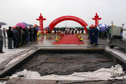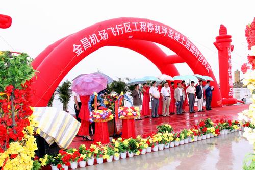2010年8月20日上午10時,金昌機(jī)場飛行區(qū)停機(jī)坪混凝土道面工程順利封倉。甘肅省交通運(yùn)輸廳、金昌市政府、甘肅機(jī)場建設(shè)投資管理公司、甘肅機(jī)場項(xiàng)目建設(shè)指揮部及施工單位等有關(guān)單位領(lǐng)導(dǎo)現(xiàn)場見證了道面工程順利封倉的時刻。