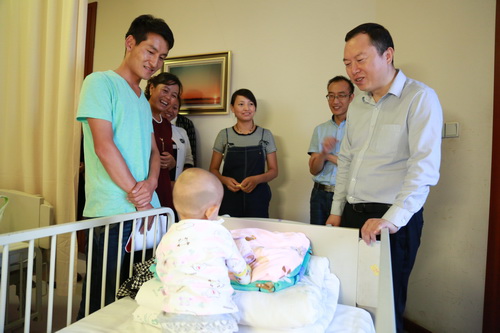 黨委書記、工會主席祁明海去醫(yī)院看望患兒