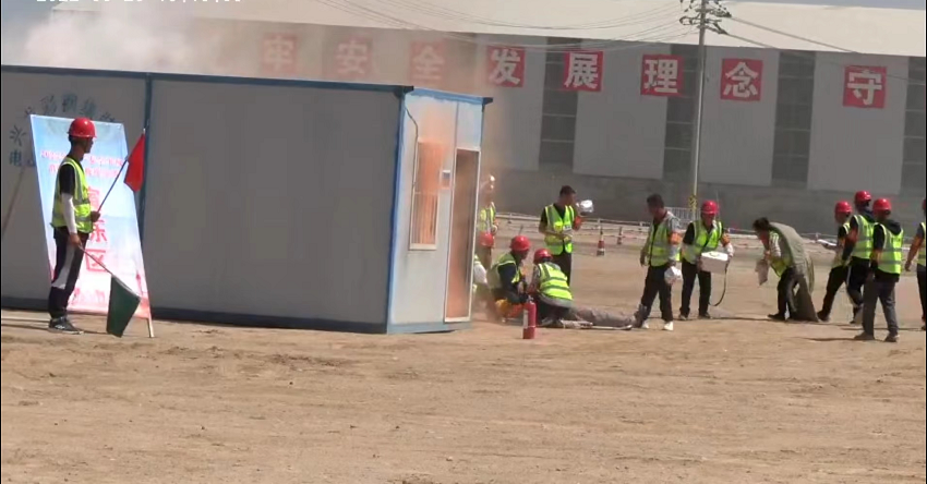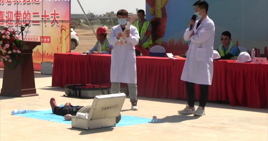 此次演練模擬項(xiàng)目現(xiàn)場駐地宿舍發(fā)生電器火災(zāi),項(xiàng)目部立即啟動應(yīng)急預(yù)案,救援組第一時(shí)間撥打消防救援電話,組織人員有序撤離到安全區(qū)域。參演人員均嚴(yán)肅對待,過程規(guī)范迅速,演練活動順利完成。演練結(jié)束后,項(xiàng)目部組織開展了消防急救培訓(xùn),包含項(xiàng)目職工使用干粉滅火器進(jìn)行滅火操作,對模擬假人進(jìn)行心肺復(fù)蘇等。