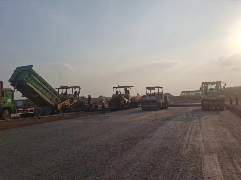 11月28日,隨著第一車水泥穩(wěn)定砂礫混合料倒入攤鋪機(jī),攤鋪機(jī)緩緩啟動,標(biāo)志著由我司承建的南寧吳圩機(jī)場改擴(kuò)建工程飛行區(qū)場道工程(四標(biāo)段)水穩(wěn)基層試驗段施工正式開始。