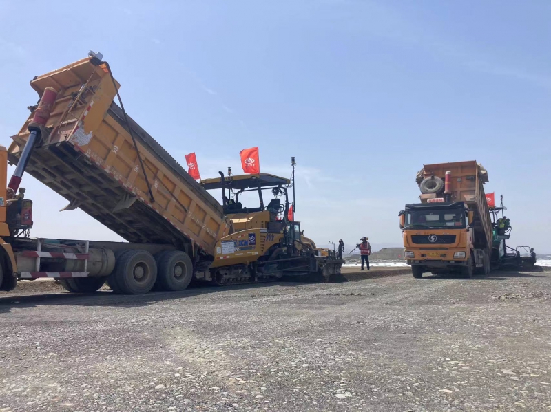 為保證攤鋪順利進(jìn)行,項目部前期做好各項準(zhǔn)備工作,在施工過程中,嚴(yán)格把控施工環(huán)節(jié),確保攤鋪施工銜接有序,高效優(yōu)質(zhì),一次成型,并使用mmGPS 3D攤鋪技術(shù)進(jìn)行兩機(jī)聯(lián)鋪。